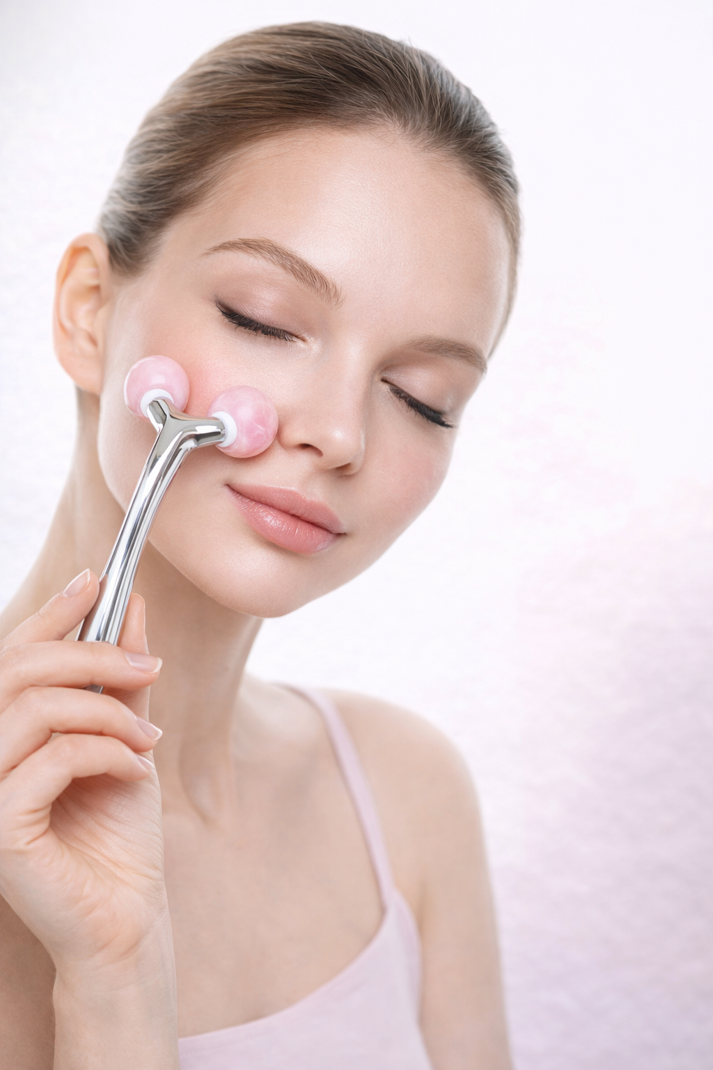 Intégrez ce rouleau visage en quartz rose à votre routine quotidienne et offrez à votre peau un moment de soin inspiré des rituels spa.